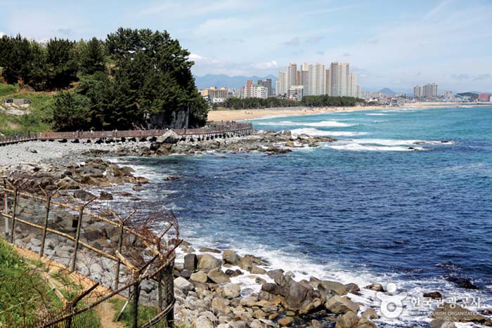 외옹치 바다향기로는 속초 앞바다를 따라 조성된 해안 산책로입니다. 푸른 바다와 시원한 바람을 느끼며 걷는 기분은 최고입니다.