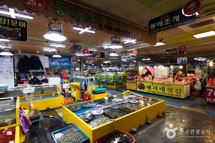속초관광수산시장은 속초 여행의 필수 코스입니다. 신선한 해산물과 다양한 길거리 음식이 가득해 속초 먹거리를 제대로 즐길 수 있는 곳이에요. 오징어순대, 닭강정, 감자옹심이, 회무침은 꼭 맛보셔야 합니다.